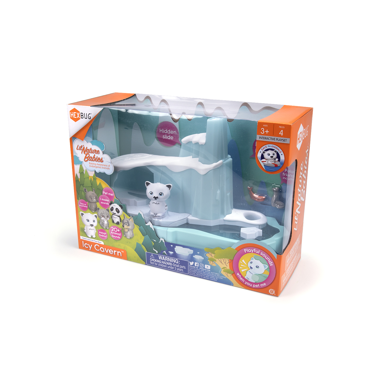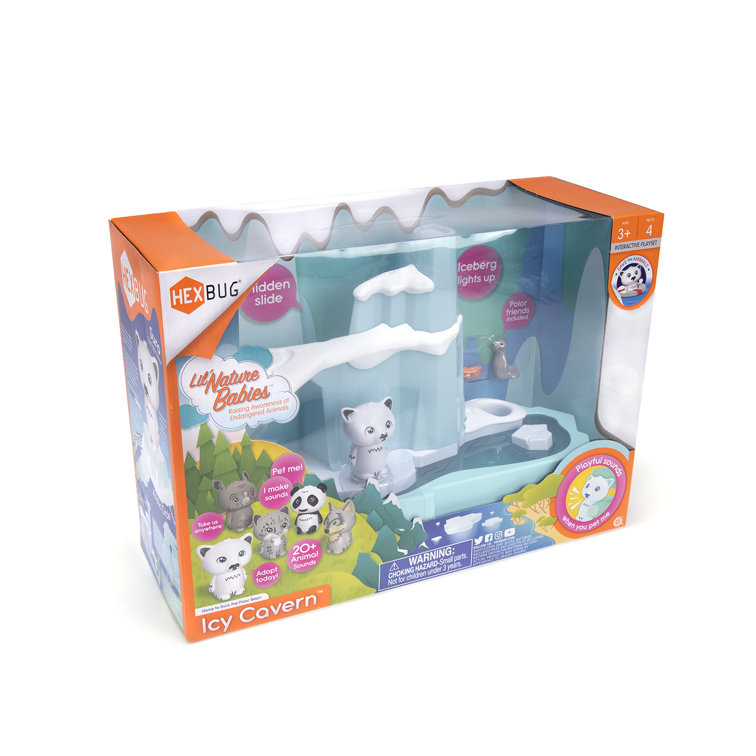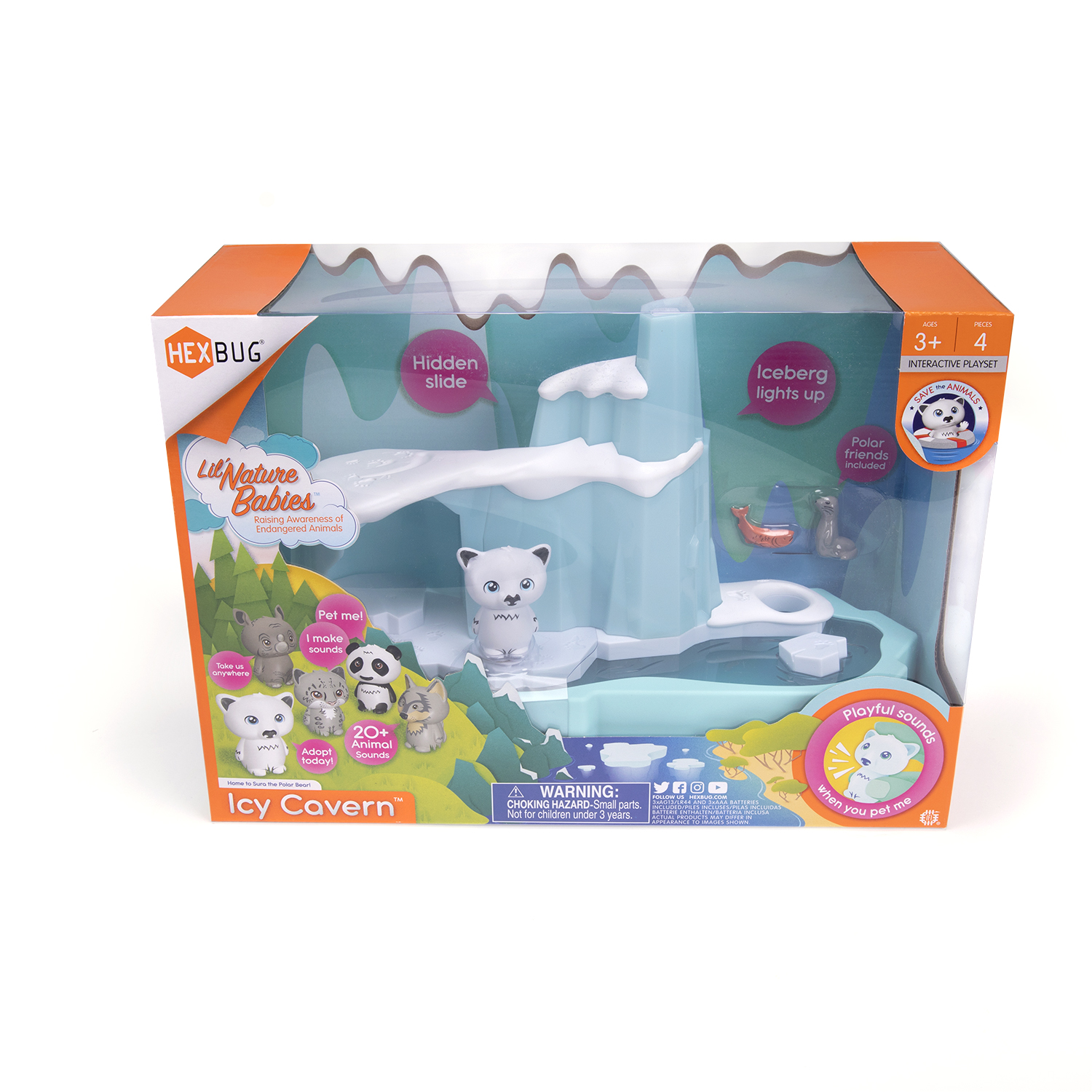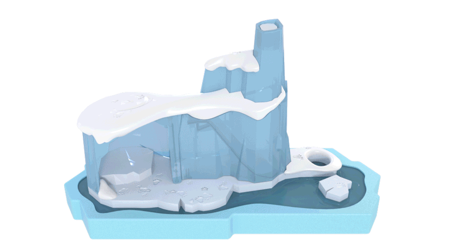 Slyšel jsi o Arktidě? Až v oblasti severního polárního kruhu žije v Ledové jeskyni medvědice Sura. Najdi tajné dveře v jeskyni a odhal zábavnou skluzavku pro Suru či jejího kamaráda tuleně. Podaří se Ti Suru postavit na ledovou kru, aby udržela rovnováhu? Použij set i jako noční lampičku a usínej při svitu polární záře. Světlo se automaticky vypne za 40 minut.