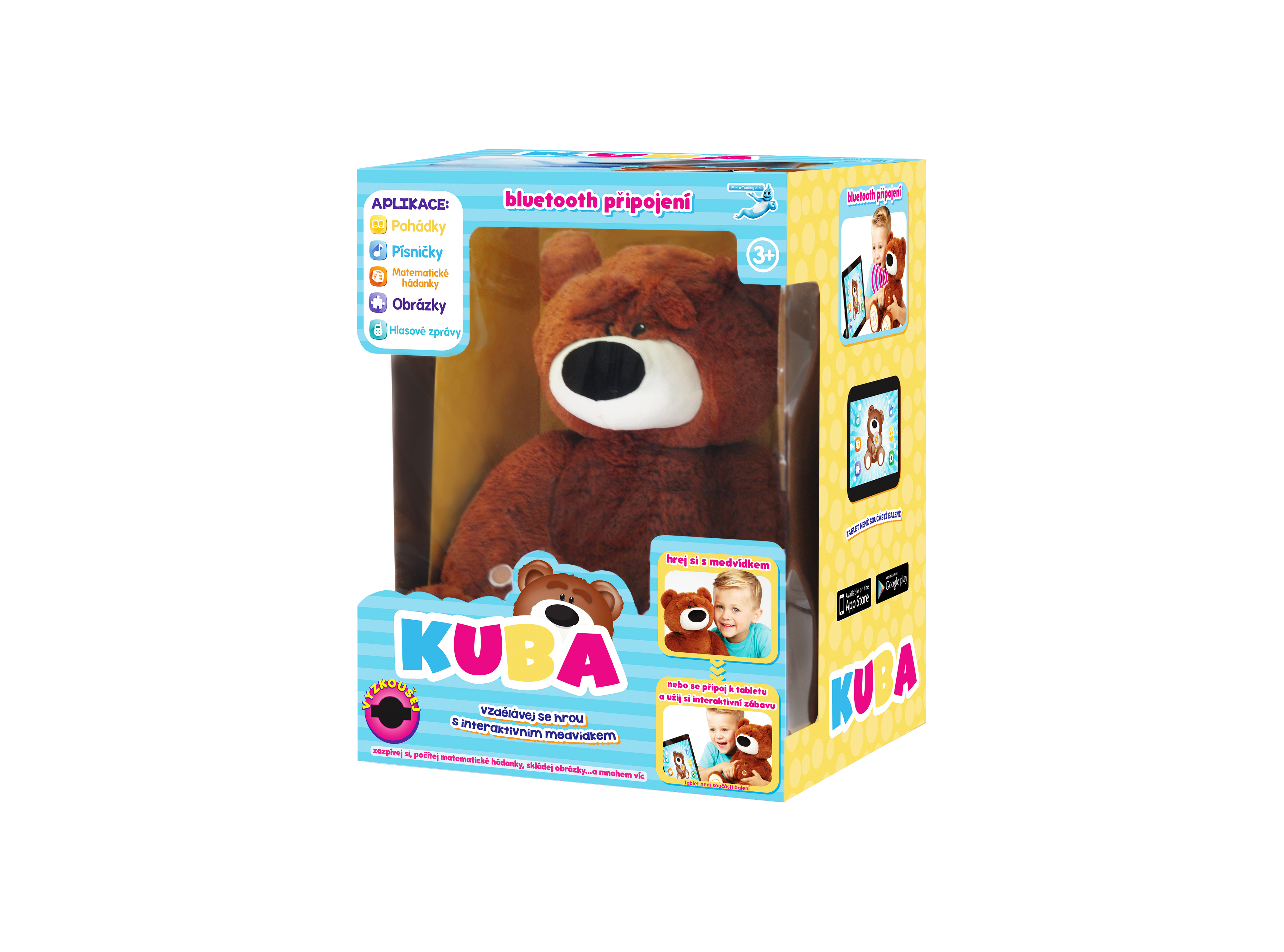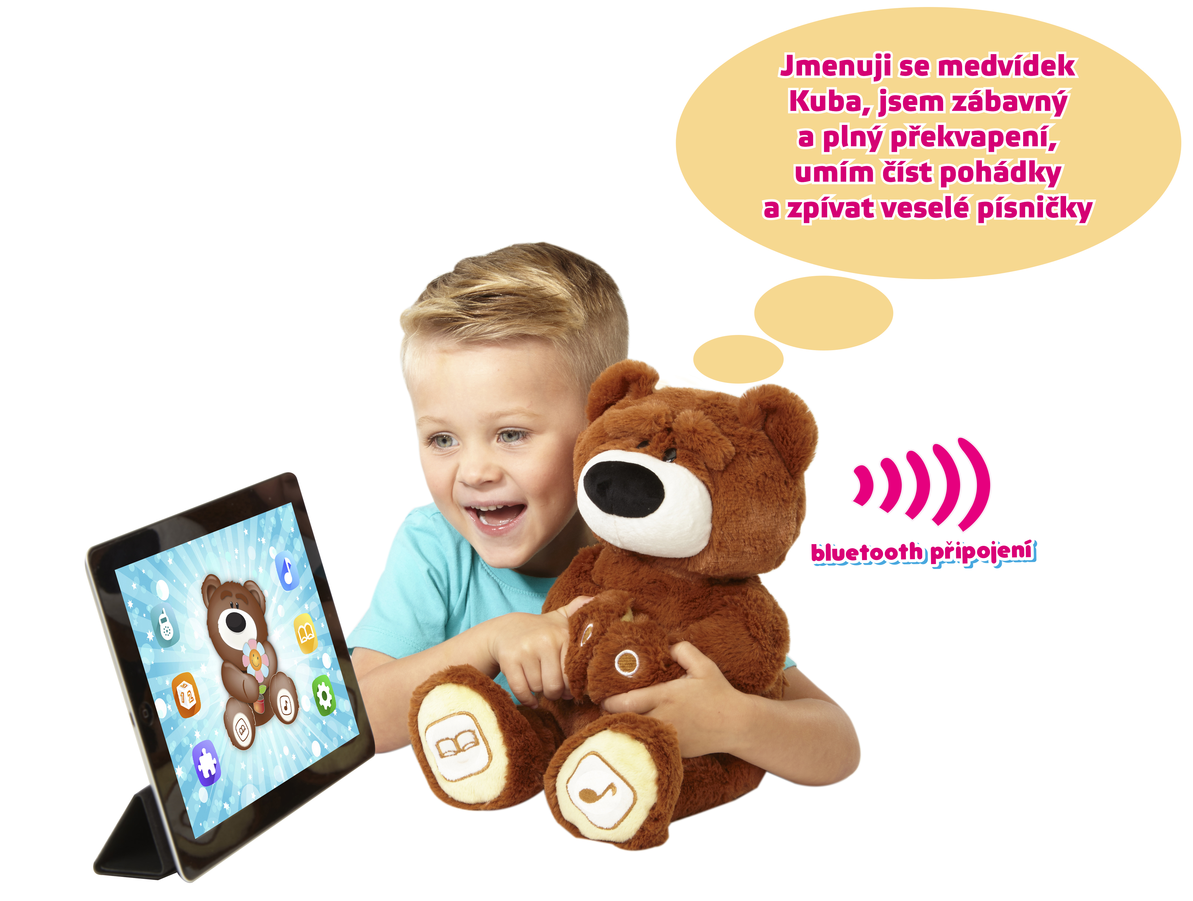 Medvídek KUBA je roztomilý interaktivní plyšový kamarád, který může být skvělým společníkem pro všechny děti. Umí zpívat písničky (Třpyť se, třpyť se, hvězdičko, Bratře Kubo, Hlava, ramena, kolena, palce, Malinký pavouček, Já jsem muzikant) a vypráví příběhy (O ošklivém káčátku, O třech malých prasátkách, Popelka, Želva a zajíc, Žabí princ).